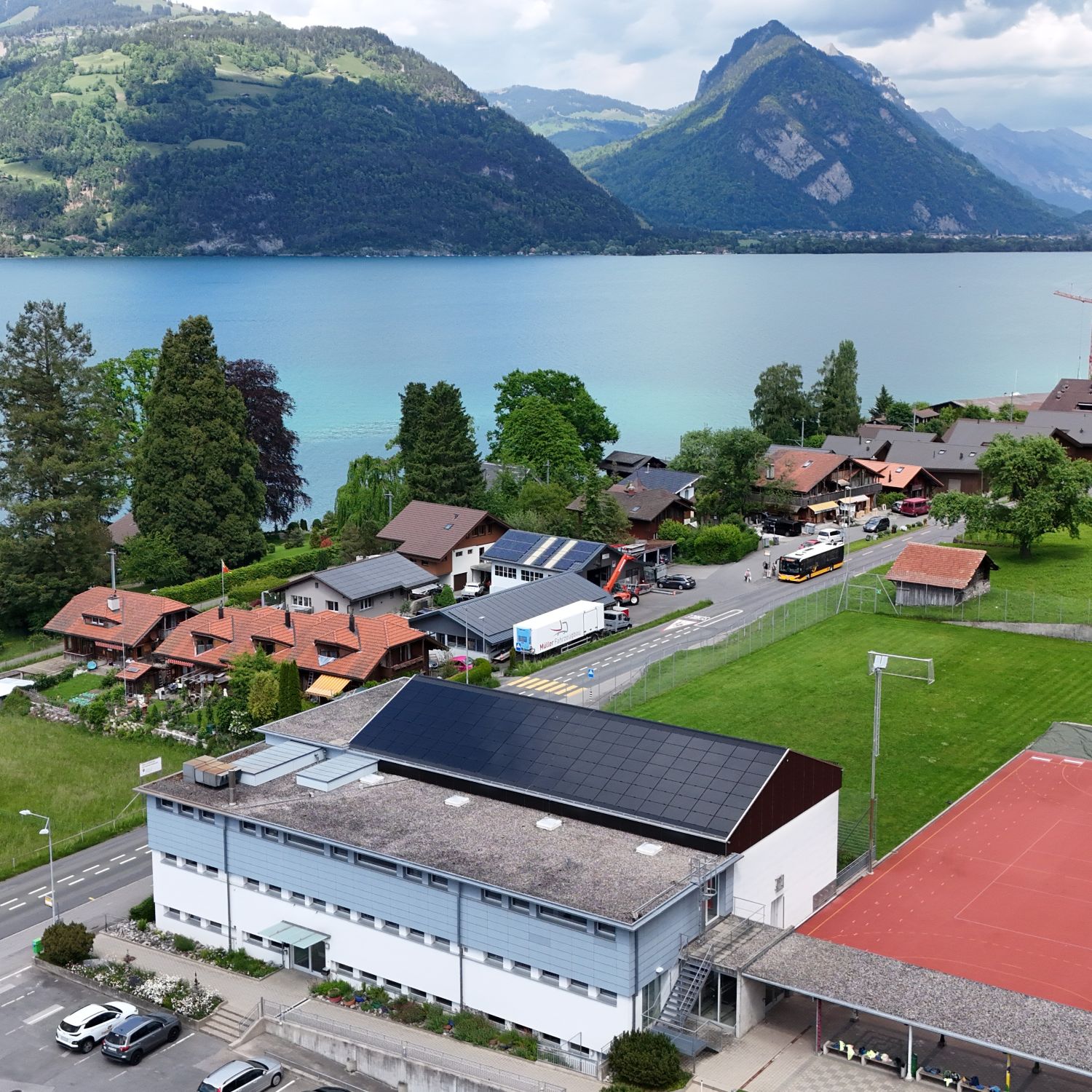 Sanierung des Turnhallendaches mit Einbau einer PV-Anlage.