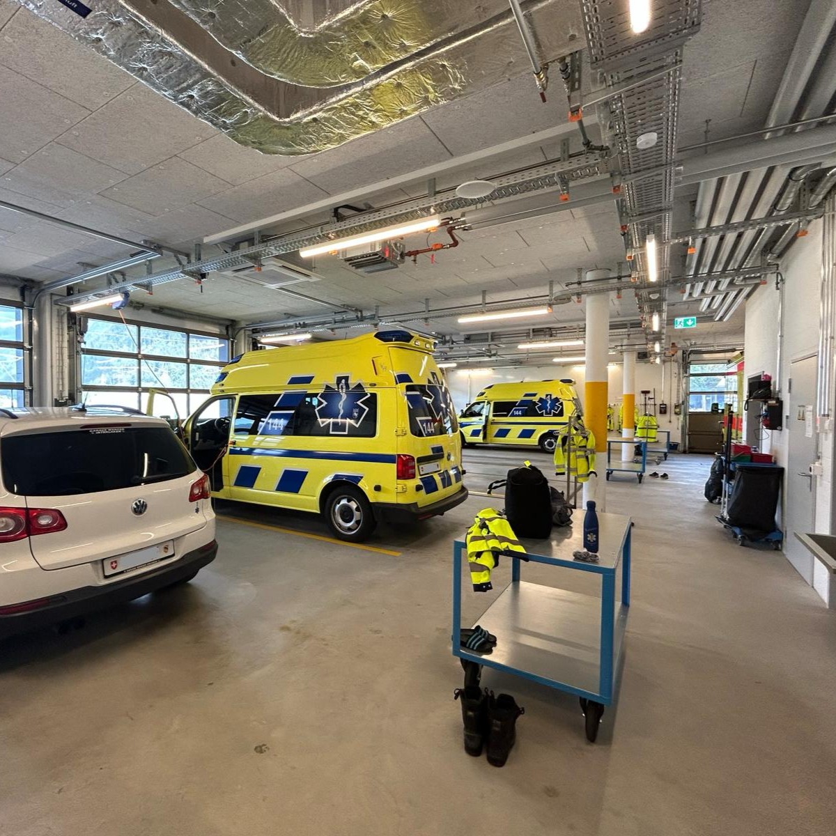 Vergrösserung des Rettungstützpunktes und Auslagerung nach Wilderswil. Fahrzeughalle, sowie Wohn- und Bürobereich für die Mannschaften.